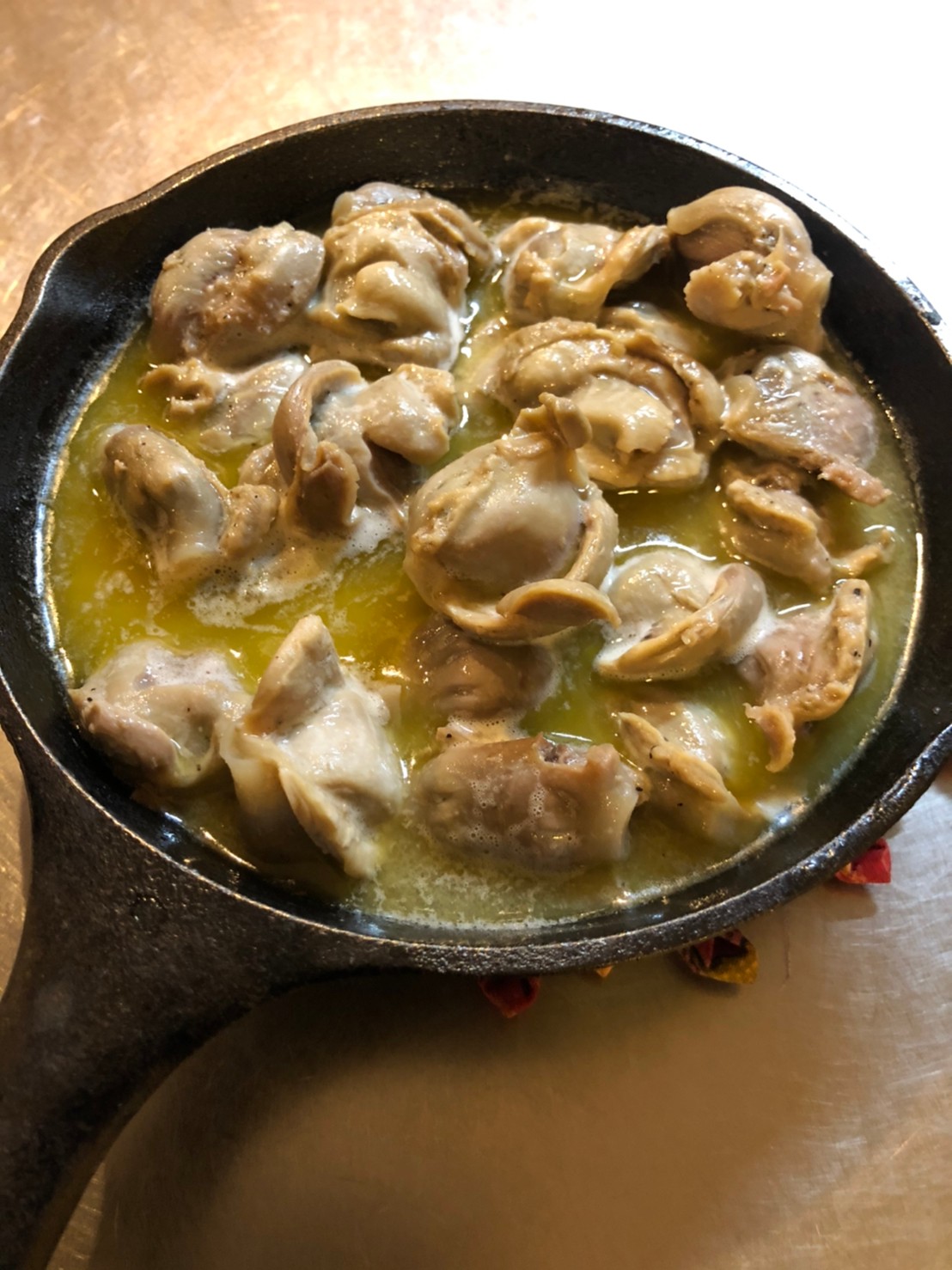 砂肝、美味しいのですが、白い筋を丁寧に取る下処理が欠かせません。とても手間で時間がかかるので、調理することを敬遠する人も多いのではないでしょうか。でも、低温調理器を使えば、とっても簡単に、しかも間違いなく美味しく出来上がります。冷蔵や冷凍保存していても、出す時にスキレットで温めれば、アヒージョ的になり、オシャレ度もぐっとアップ。晩酌のおつまみにも、パーティー料理にも。
