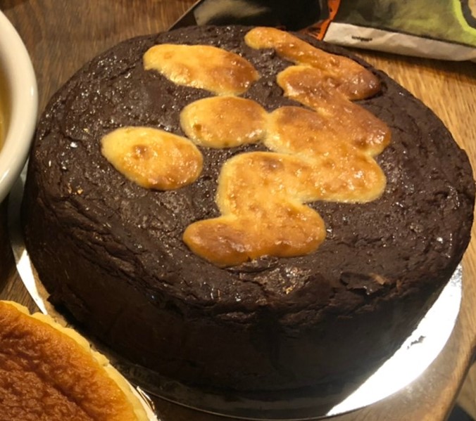 ニューヨークチーズケーキですが、チョコレートがたくさん入っている、濃厚な食感です。ハロウィン仕様で焼いているので、見た目はアレですが。