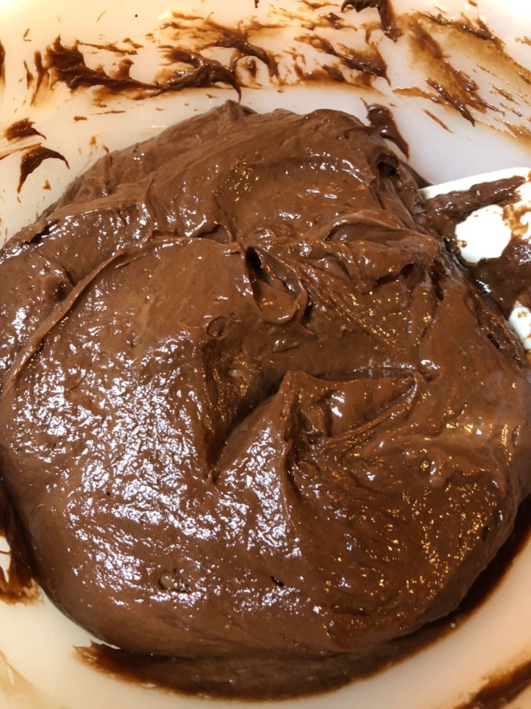 ④ 溶かしたチョコレートに生地を少し入れ、よく混ぜる。4回繰り返す。