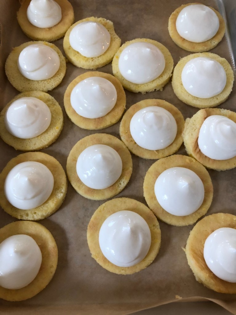 ④ ①のプレーンビスキュイに③を丸くこんもりと絞り出す。冷蔵庫で1時間ほど冷やし固める。