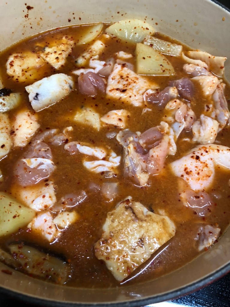 唐辛子もそこそこ入りますので、体を温めます。鶏肉とお餅で滋養強壮や体力増強に一役買います。冬の寒い日にいかがでしょうか。
