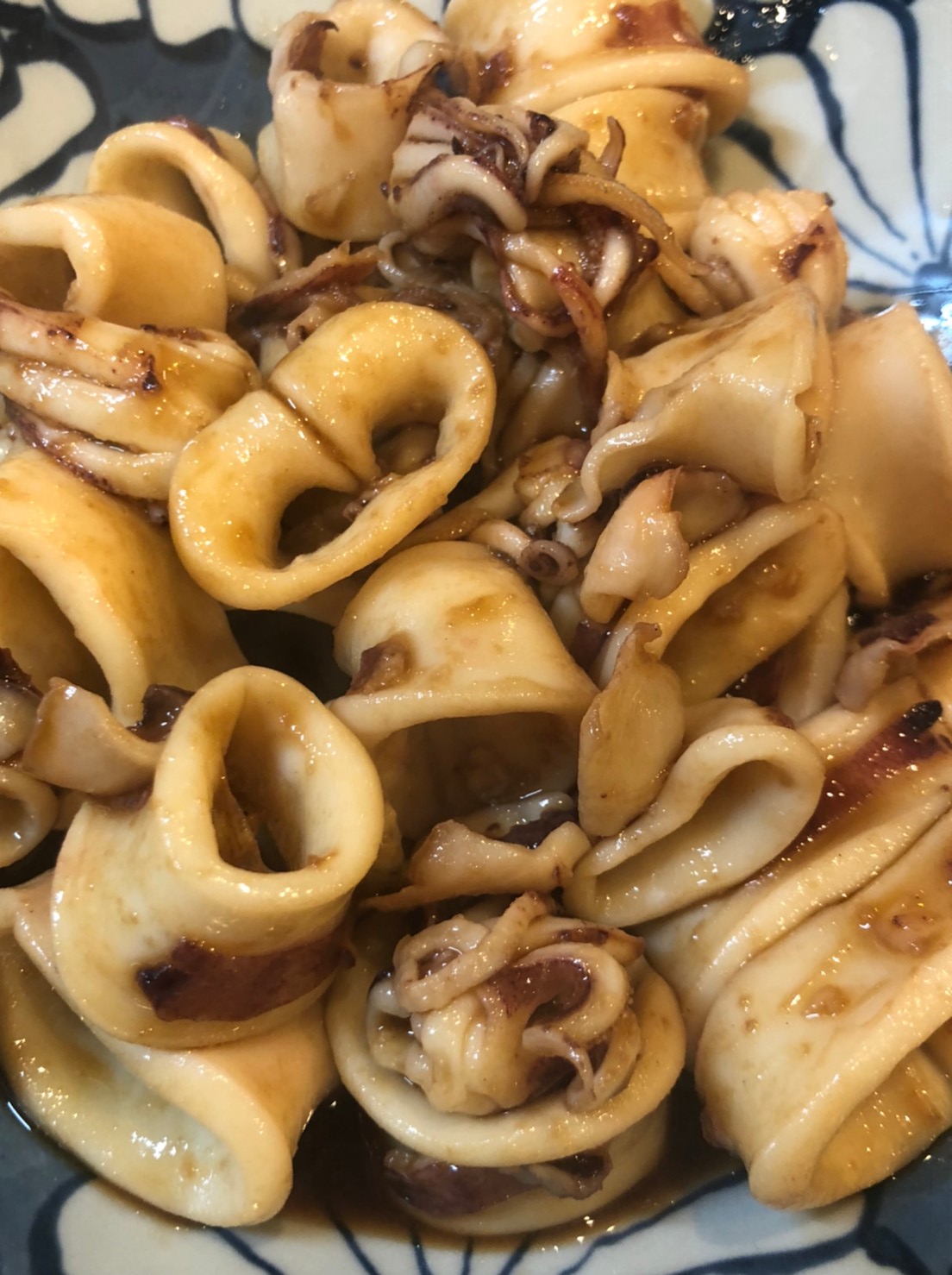 Squids are very common food and there are many types of recipes. This is very traditional Japanese cooking “terini”, sweet with soya-bean sauce flavor. There also many types of squid and I used small squid this time. However, you can use any types. Before cooking, make sure all the suction cups, bone, and mouth are removed. If squids were big, you may need to cut arms but if squids were small, you can cook as they are.