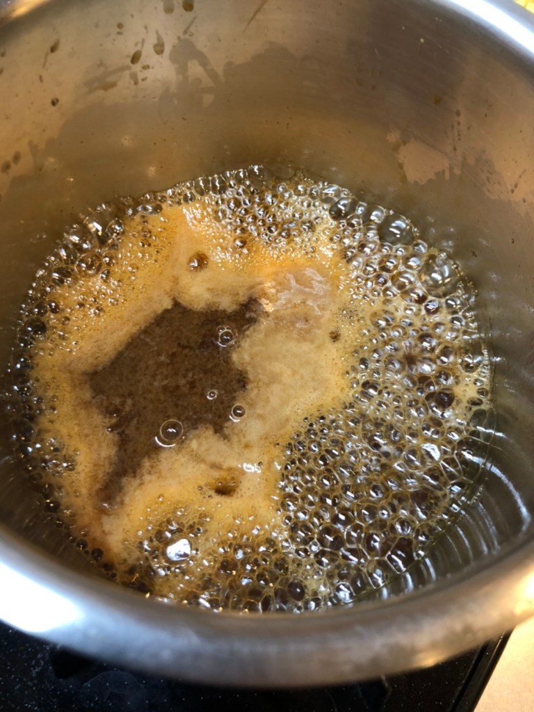 5. Put sauce back to the pan and boil to make the sauce 1/2 quantity.