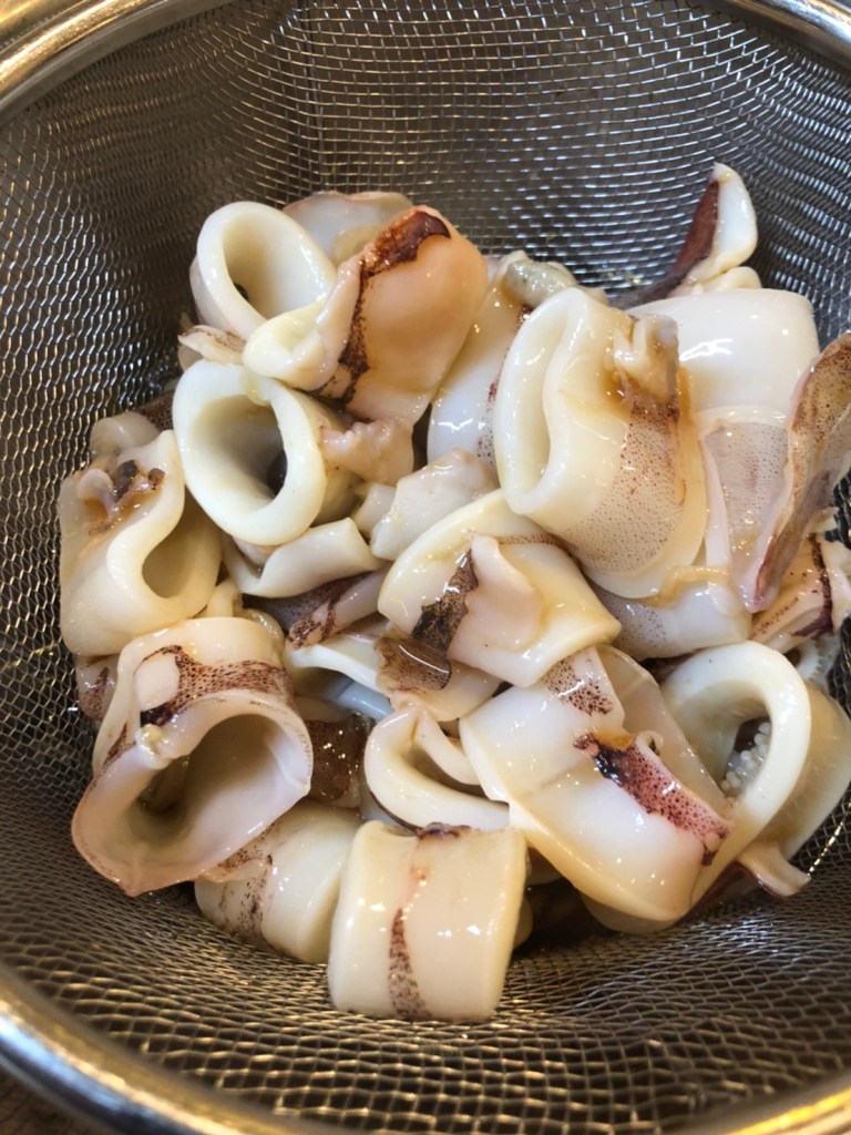 3. Add squid when boiled. Mix 2-3 times, and drain.