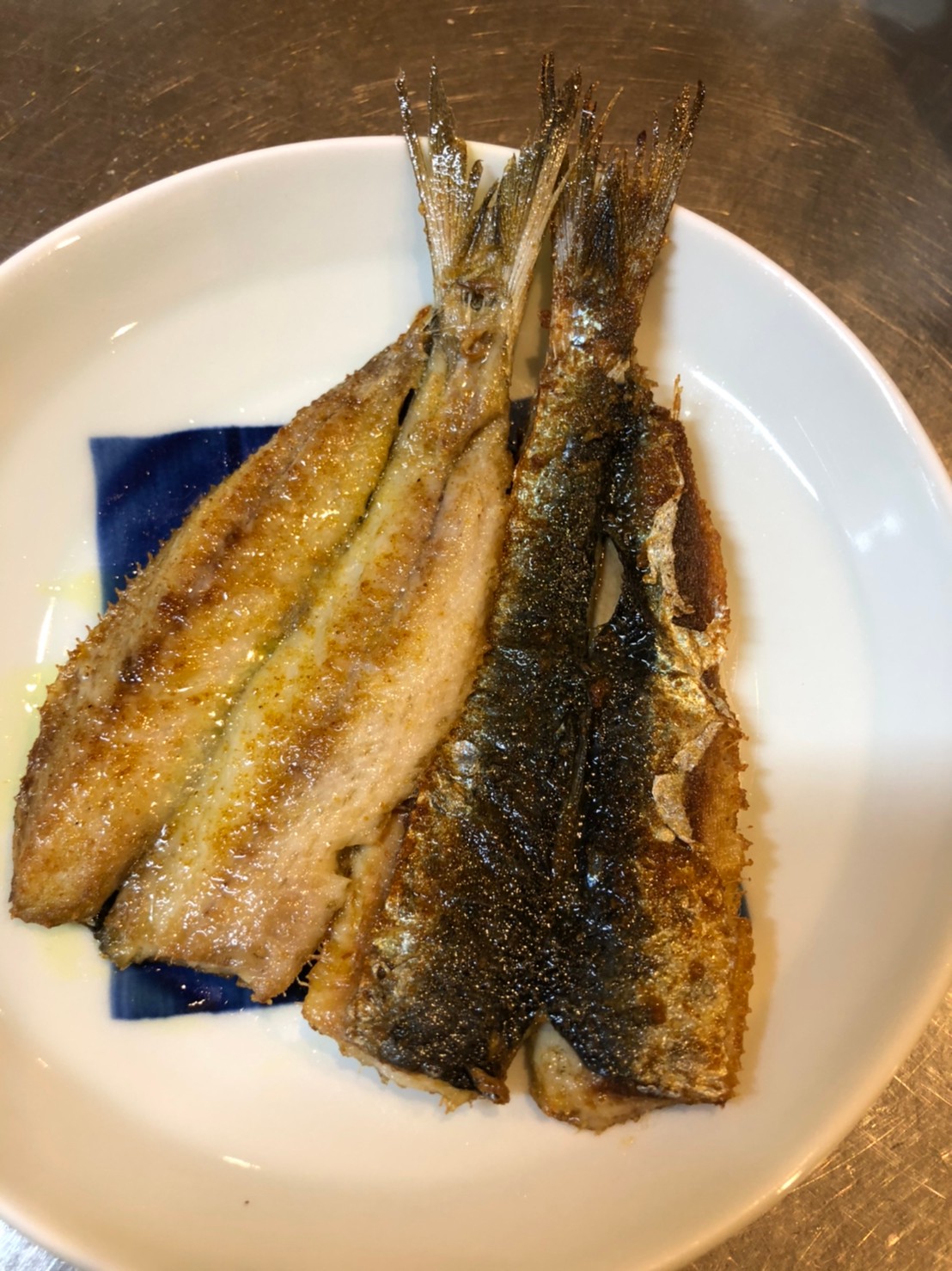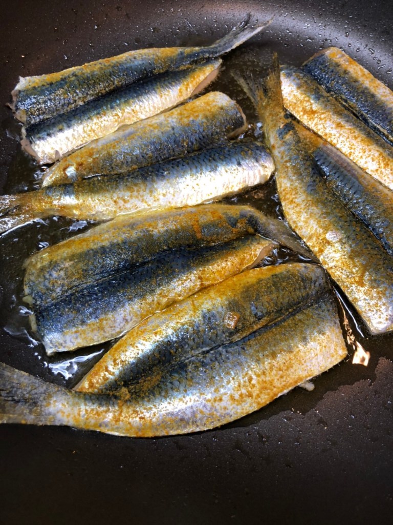 開いてある鰯を買ってくると、調理がとても楽になります。小骨が多いので、苦手な子供も多いかもしれません。焼き魚にするよりも、このようにフライパンで焼くと食べやすくなります。