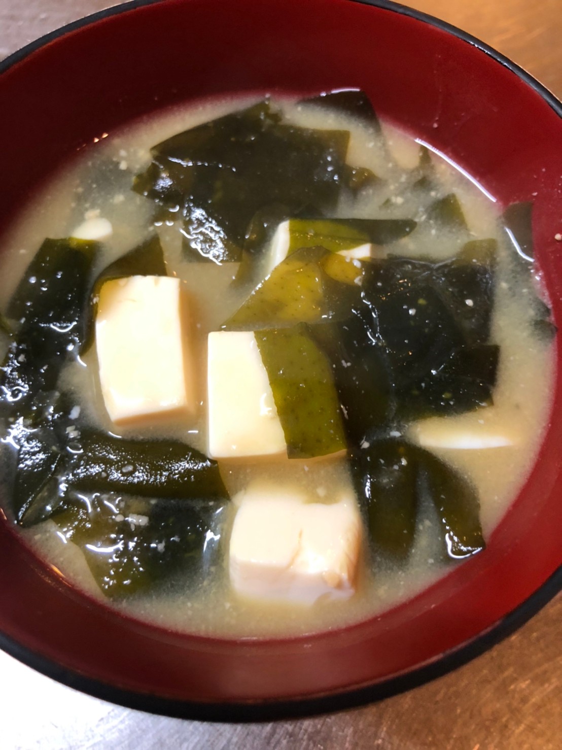 Miso soup with tofu and seaweed is the most basic miso soup. Therefore, dashi-soup is very important. It can be an easy dashi but never use just water. The taste would be very different. Also, there are many types of seaweed, and for this miso soup, it should be “wakame”. Wakame can be sold in dry or wet. In both cases, wakame should be soaked in a water before use.