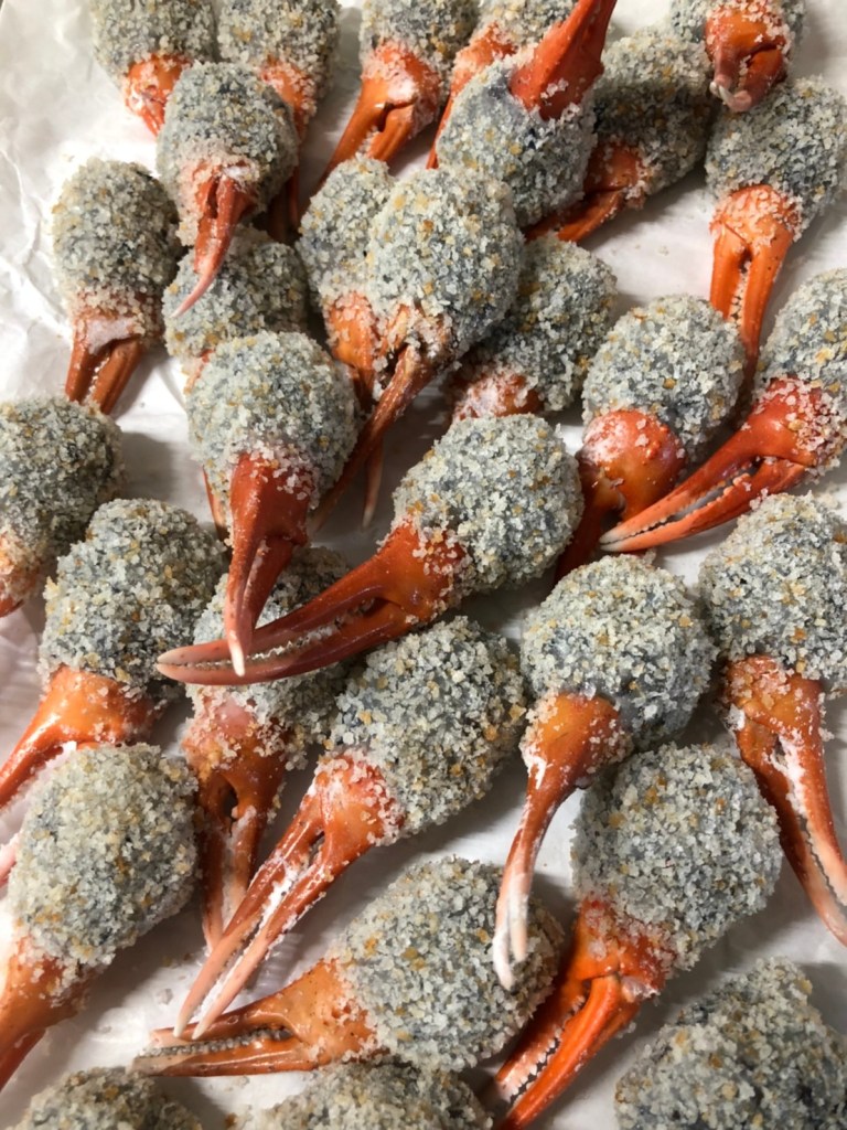 ② カニの爪は爪の根本に片栗粉(分量外)を付ける。