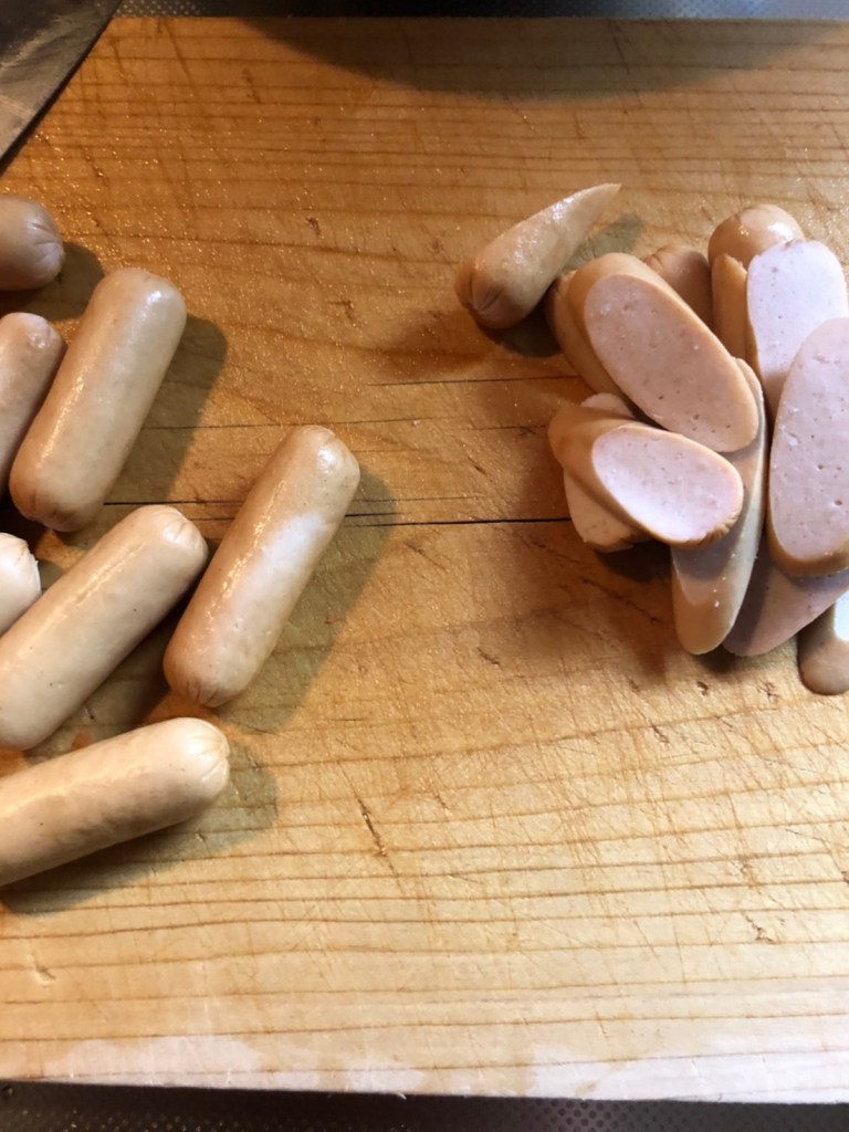 ④ ウインナーは斜めに切る。