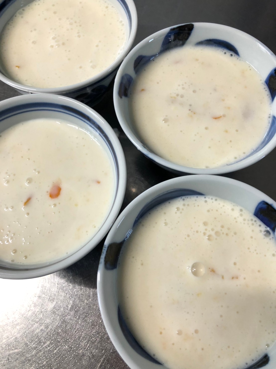 3. Heat milk in a small pan. Stop heating when milk boils. Add drained gelatin and dissolve well.