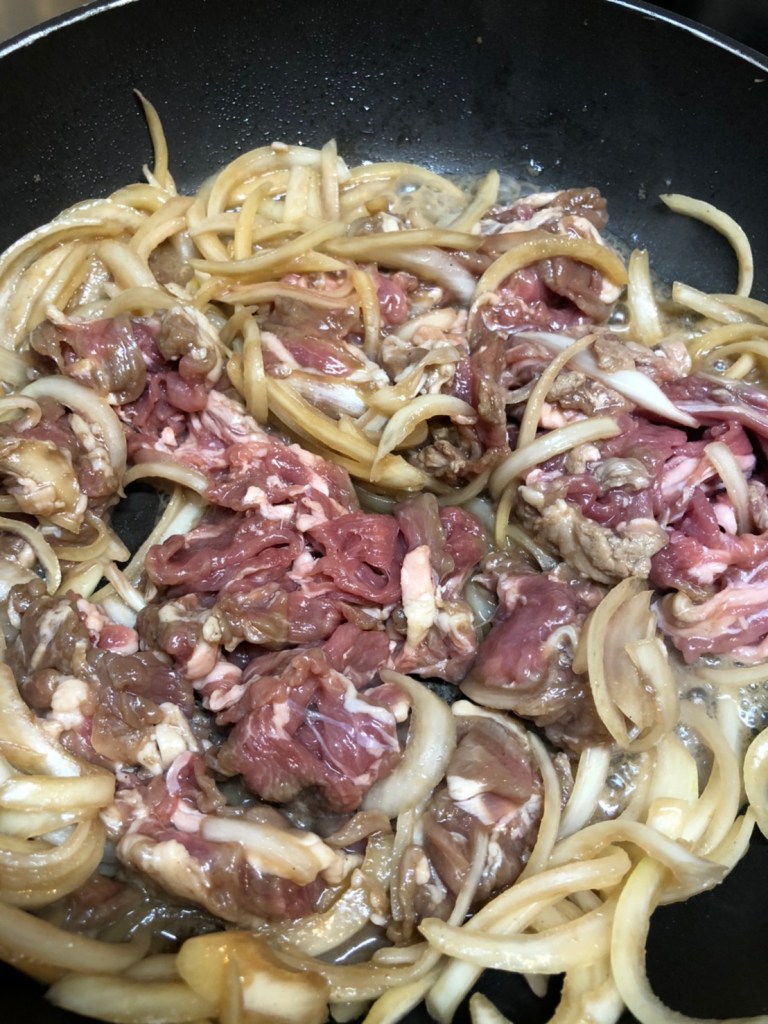 近年ラム肉はスーパーでよく売られるようになりました。まずは定番のジンギスカン風です。ジンギスカン鍋がなくても、フライパンで焼けばOKです。北海道物産展等、屋外で売られるジンギスカンは大抵大きな鉄板で調理されています。これの応用になります。もちろん、有名店のタレを買ってきて使ったら、お店の味に近いものになります。タレがなかった場合、のレシピです。
