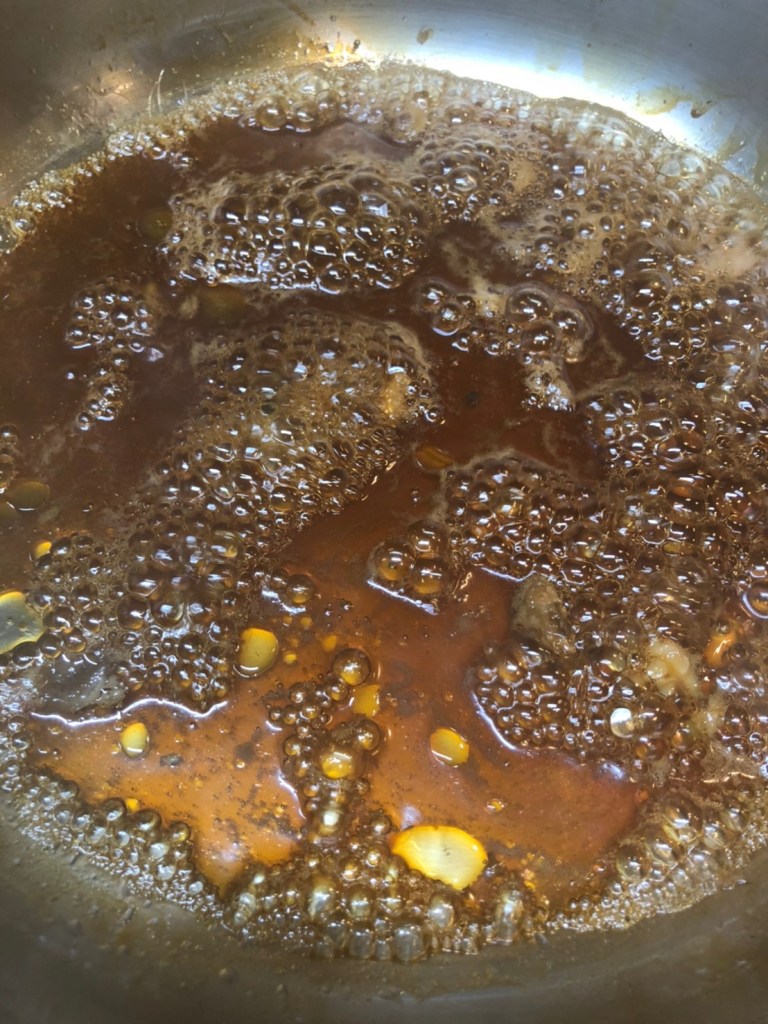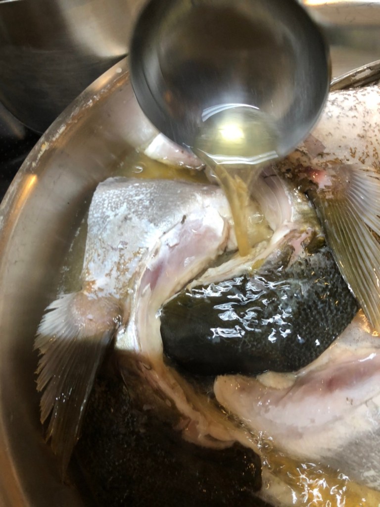 6. Take out fish. Boil the soup to make a sauce. Pour this sauce on the fish.