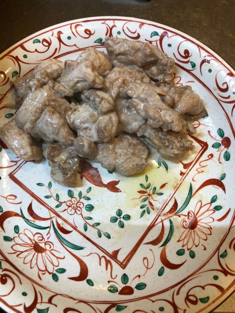 ④ 鍋にオリーブオイルとバター①を熱し、鶏肉を入れ、両面に焼き色が付くまで焼く。最後に蓋をして、5分ほど弱火で蒸し焼きにする。
