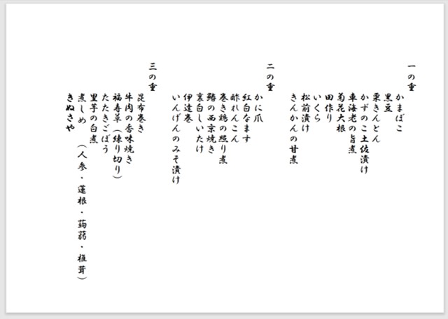 *福寿草は練り切りで、通常はおせちに含まれない甘味なので省略します。